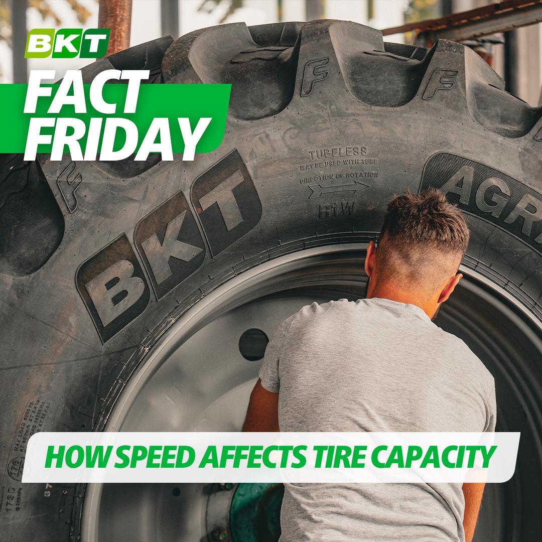 At slower field speeds, air pressures can be reduced and can still carry a heavier load. Slower speeds do not generate heat as fast and can dissipate more quickly. Reduced air pressure at slower speeds allows for a larger footprint for traction and reduced soil compaction.